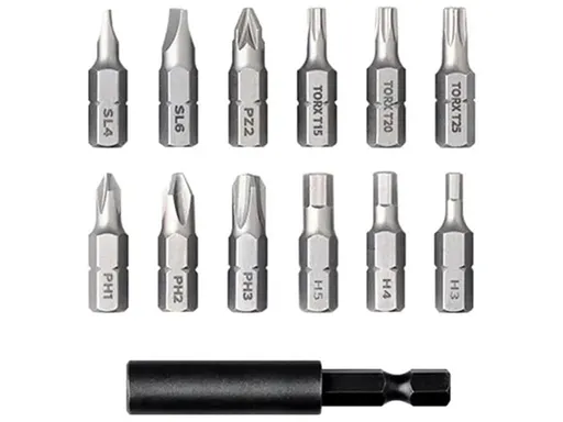 12 عدد سری فولادی S2 با سختی HRC60 (PH2، PH3، H3، H4، H5، SL4، SL6، T15، T20، T25، PZ2، PH1)